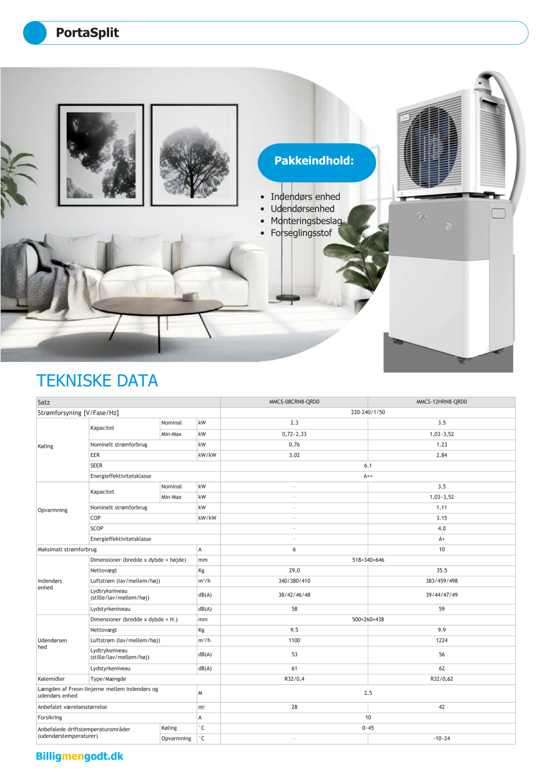| Energimærkning køling/varme | A++/A+ | |